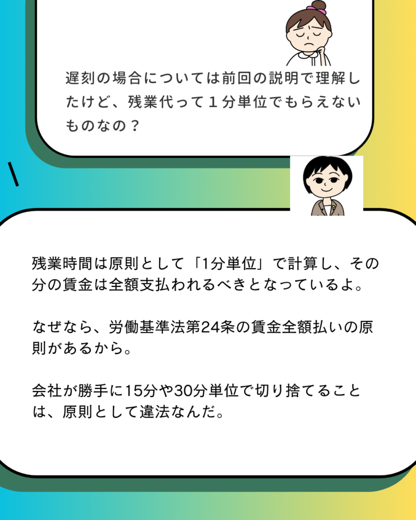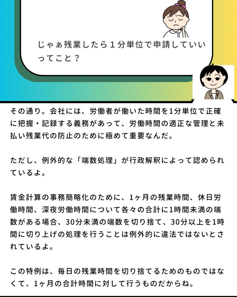 1. 残業時間申請についての原則:「1分単位」での支払いが義務です