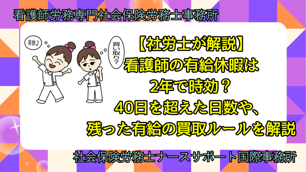 【社労士が解説】看護師の有給休暇は2年で時効?40日を超えた日数や、残った有給の買取ルールを解説