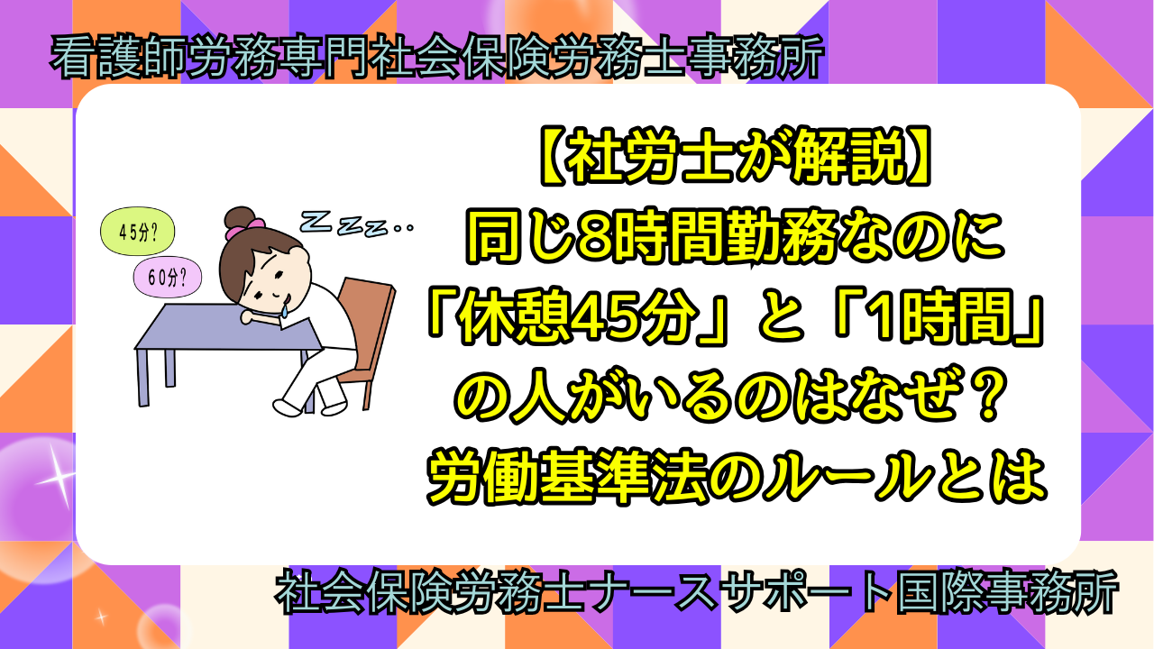 「同じ8時間勤務」なのに休憩時間に差がある。これは、職場でよくある疑問ですね。